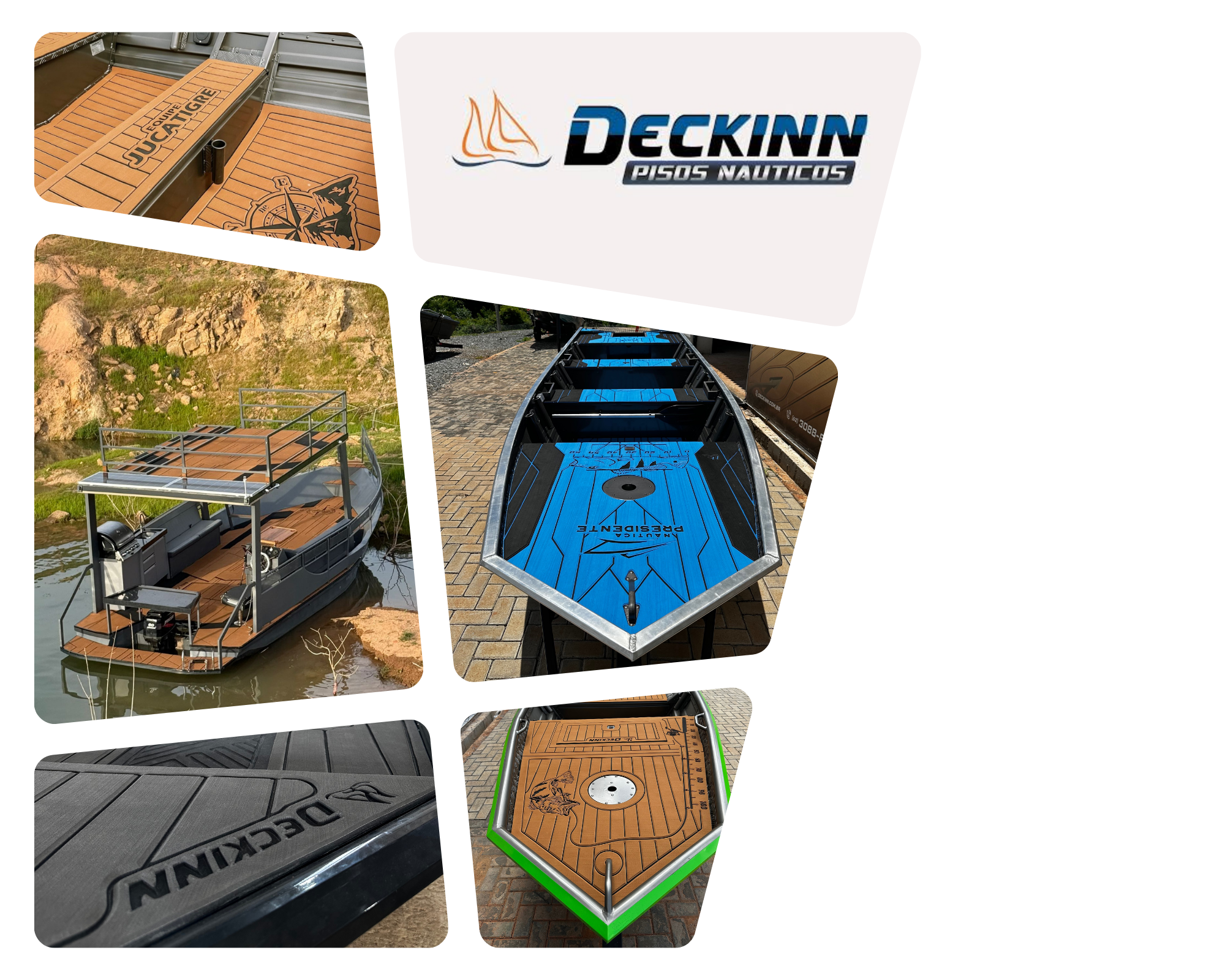 A Deckinn fabrica pisos náuticos em EVA personalizados para barcos de alumínio, lanchas de fibra, jet skis, catamarãs, flutuantes, VCat e Fluvimar.