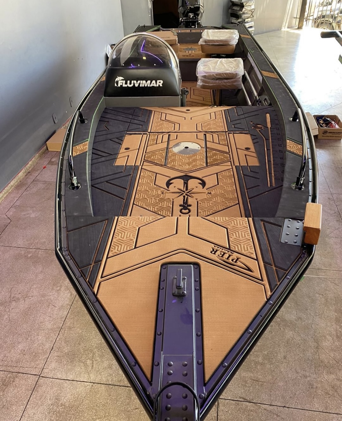 Nossa estrutura produtiva conta com ampla área fabril e tecnologia aplicada à fabricação de pisos náuticos sob medida. Utilizamos sistemas de corte de alta precisão, que asseguram encaixe perfeito na embarcação, respeitando medidas e curvas com exatidão. Os processos de laminação e adesivagem seguem padrões técnicos elevados, garantindo firmeza, resistência e longa vida útil mesmo em ambientes náuticos exigentes.
